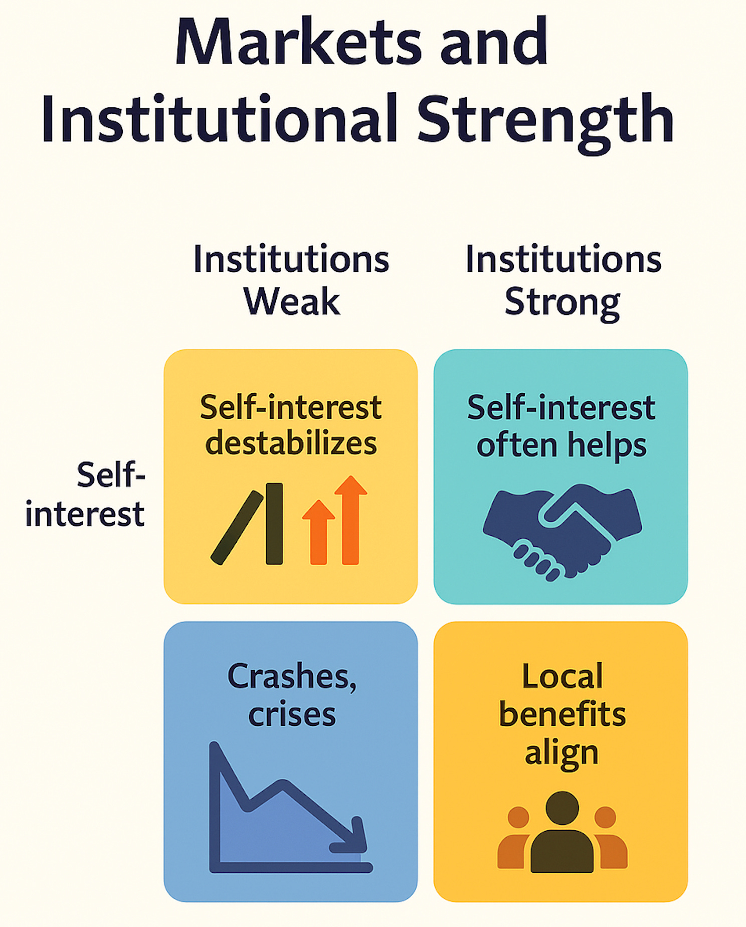 The popular reinterpretation obscures Smith’s actual position: markets function well only within a moral and legal framework, and self-interest aligns with the public good only under conditions of fairness, social trust, and wise governance.